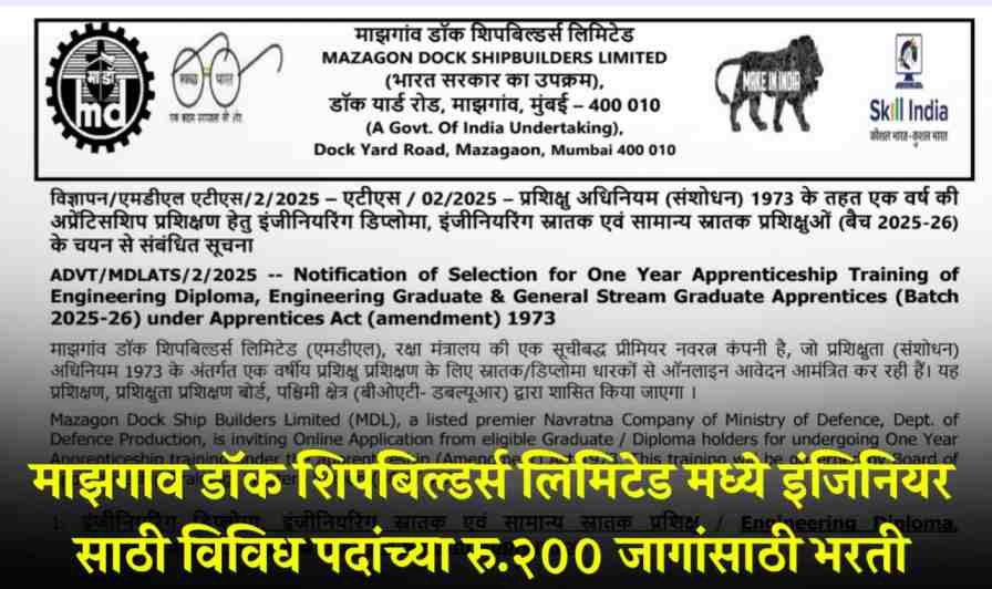 Bank of Maharashtra Bharti 2026: नमस्कार मित्रांनो, बँक ऑफ महाराष्ट्र अंतर्गत “अप्रेंटिस” पदाची एकूण ६०० रिक्त जागा भरण्यासाठी पदांनुसार पात्र असणाऱ्या उमेदवारांकडून अर्ज मागविण्यात येत आहे. अर्ज ऑनलाईन पद्धतीने करायचा आहे. अर्ज करण्याची शेवटची तारीख २५ जानेवारी २०२६ आहे. तुम्ही जर या भरतीसाठी अर्ज करण्यास इच्छुक असाल तर ही माहिती शेवटपर्यंत नक्की वाचा. त्याचबरोबर अशाच प्रकारचे नवनवीन नोकरीच्या अपडेट मिळवण्यासाठी … Read more